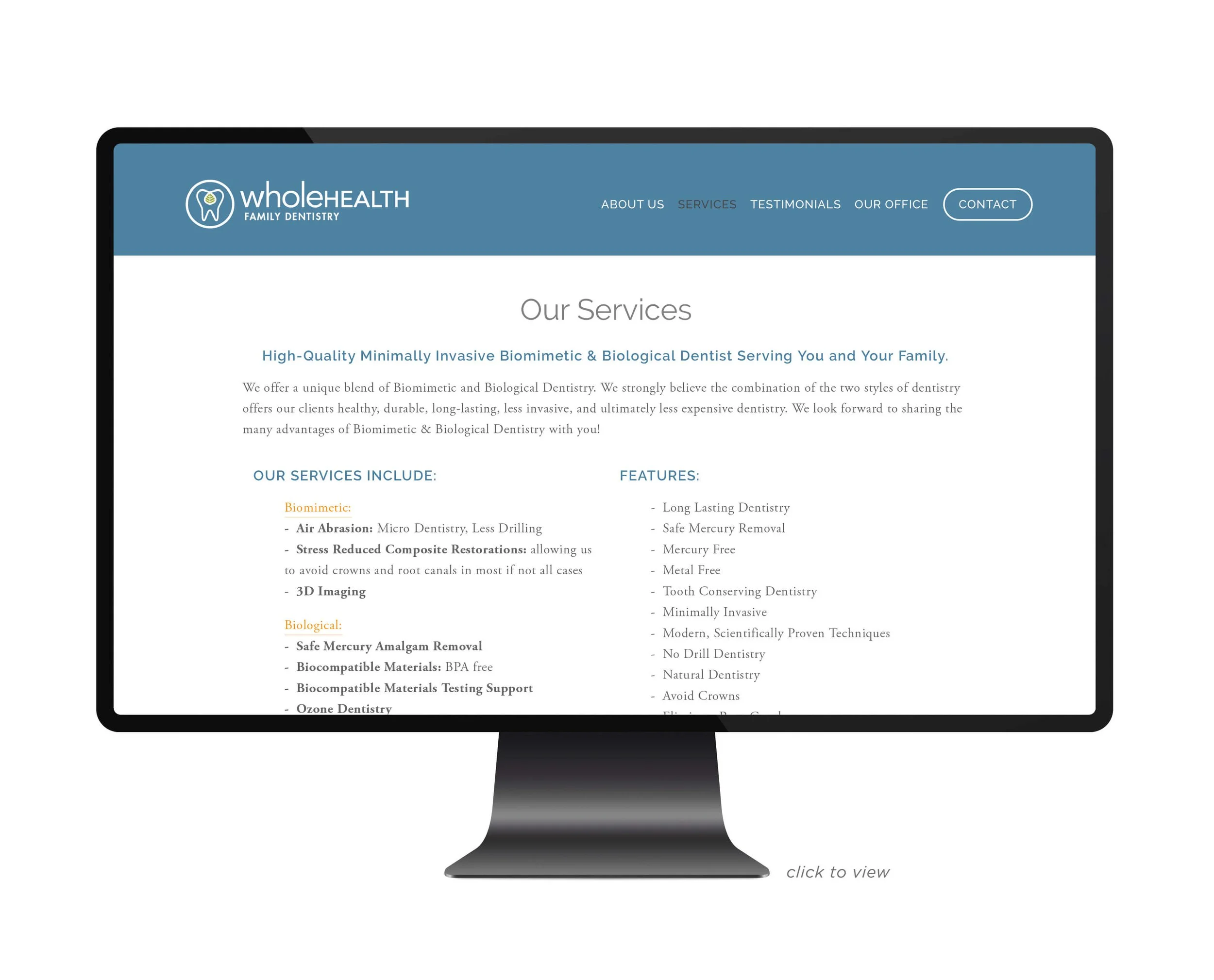 WholeHealth Family Dentistry hired us to help them start fresh with a new name and identity as they launched their own holistic dental practice. Targeting consumers in search of an effective alternative to traditional dentistry we developed a logo, branding, and advertising for WholeHealth. The look we designed is clean and crisp without appearing sterile. The contemporary design of the advertising, website and print materials is welcoming, natural, and down-to-earth with an emphasis on educating potential clients who may be unfamiliar with biomimetic and biological dentistry.